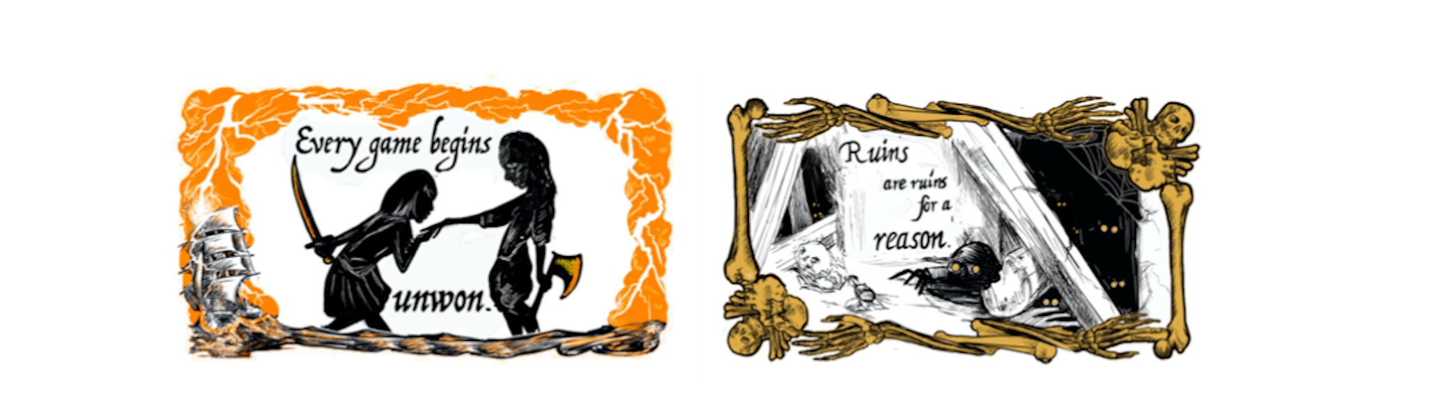 The Spanish Inquisition INTERRUPTED by aliens! In October, reserve your copy of Negocios Infernales, a rules-light roleplaying game where, instead of dice, you use gorgeous, macabre cards to help decide where the story will go.
